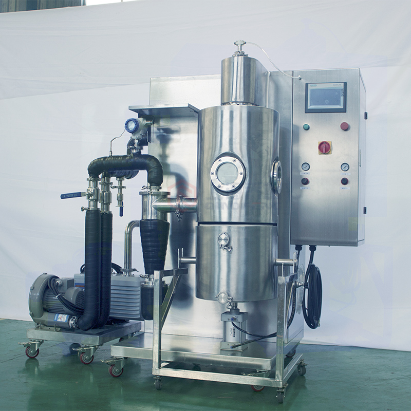 QFN-FSD-1實驗室噴霧冷凍干燥機把噴霧干燥和真空冷凍干燥二者有機的結合起來,所需的干燥時間極短,部分物料干燥時間不超過5小時(2000ML/次),極大的縮短了傳統的真空冷凍干燥時間,且干燥后的物料為粉狀的固體,經噴霧冷凍干燥的物品,原有的生物、化學特性基本不變,易于長期保存;